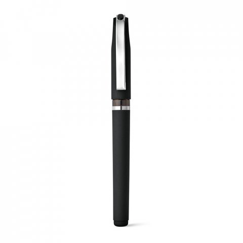 ABS-balpen met rubberen afwerking, antisliphandgreep en metalen clip. Zwarte inkt, inclusief navulling.ø12 x 140 mm