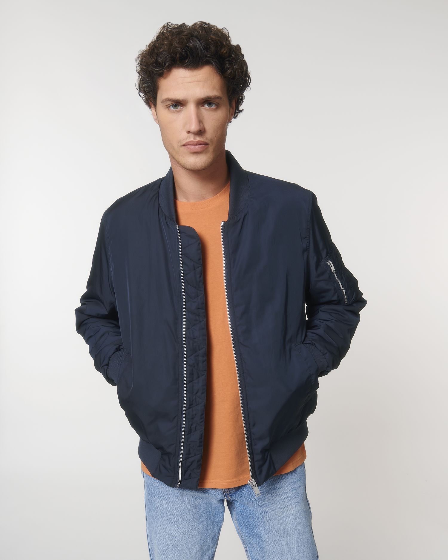 Unisex bomberjack. Normale pasvorm, Round Neck with Collar, Long Sleeve, Twill Weave. Zilverkleurige, metalen ritssluiting vooraan 1x1-ribboord aan de hals, mouwzoom en zoom onderaan Ritszakje met vier balpenvakjes op de mouw Paspelzak met drukknoopsluiting vooraan Binnenkant volledig doorgestikt Binnenzak met drukknoopsluiting Ritssluiting aan de binnenkant onderaan en op de linkerborst voor extra comfort