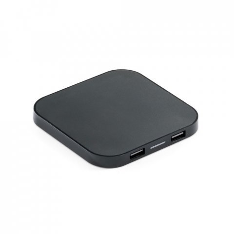 Draadloze oplader en USB Hub 2'0. Dit product is voorzien van draadloze oplaadtechnologie, met 5V/2A-ingang, 5V/0'5-1A-uitgang, 2 USB-poorten en oplaadcapaciteit van 5W. Inclusief micro USB-kabel en compatibel met alle smartphones met draadloze oplaadtechnologie.90 x 90 x 10 mm