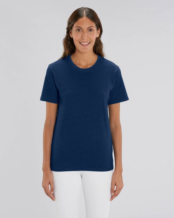 Uniseks T-shirt van denim. Normale pasvorm, Ronde hals, Short Sleeve, Enkelvoudige jersey. Ingezette mouwen Hals met 1x1-ribboord Verstevigingsband in de hals, gemaakt van het hoofdmateriaal Breed dubbel sierstiksel onderaan de mouwen en onderaan het lijfje Verwassen effect bij alle naden Artikel geverfd met indigo, gelieve rekening te houden dat elk artikel verschillend is en dat er mogelijkheid is tot verkleuring Lees daarom ons onderhoudslabel en de printtips aandachtig door