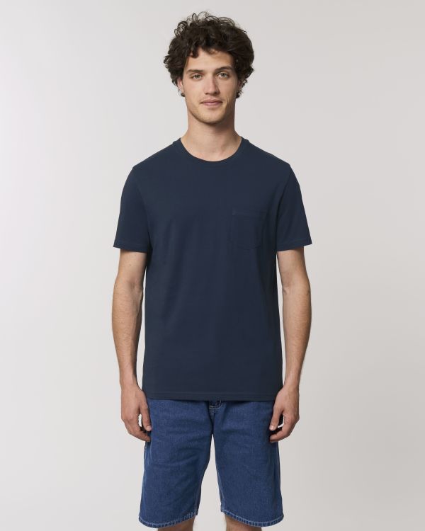 Uniseks T-shirt met zak. Normale pasvorm, Ronde hals, Short Sleeve, Enkelvoudige jersey. Ingezette mouwen Hals met 1x1-ribboord Verstevigingsband in de hals, gemaakt van het hoofdmateriaal Breed dubbel sierstiksel onderaan de mouwen en onderaan het lijfje