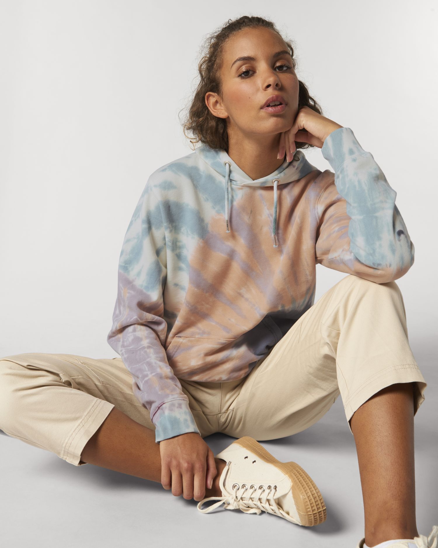 Uniseks tie dye-sweatshirt met capuchon. Normale pasvorm, Ronde hals met kap, Long Sleeve, Terry . Ingezette mouwen