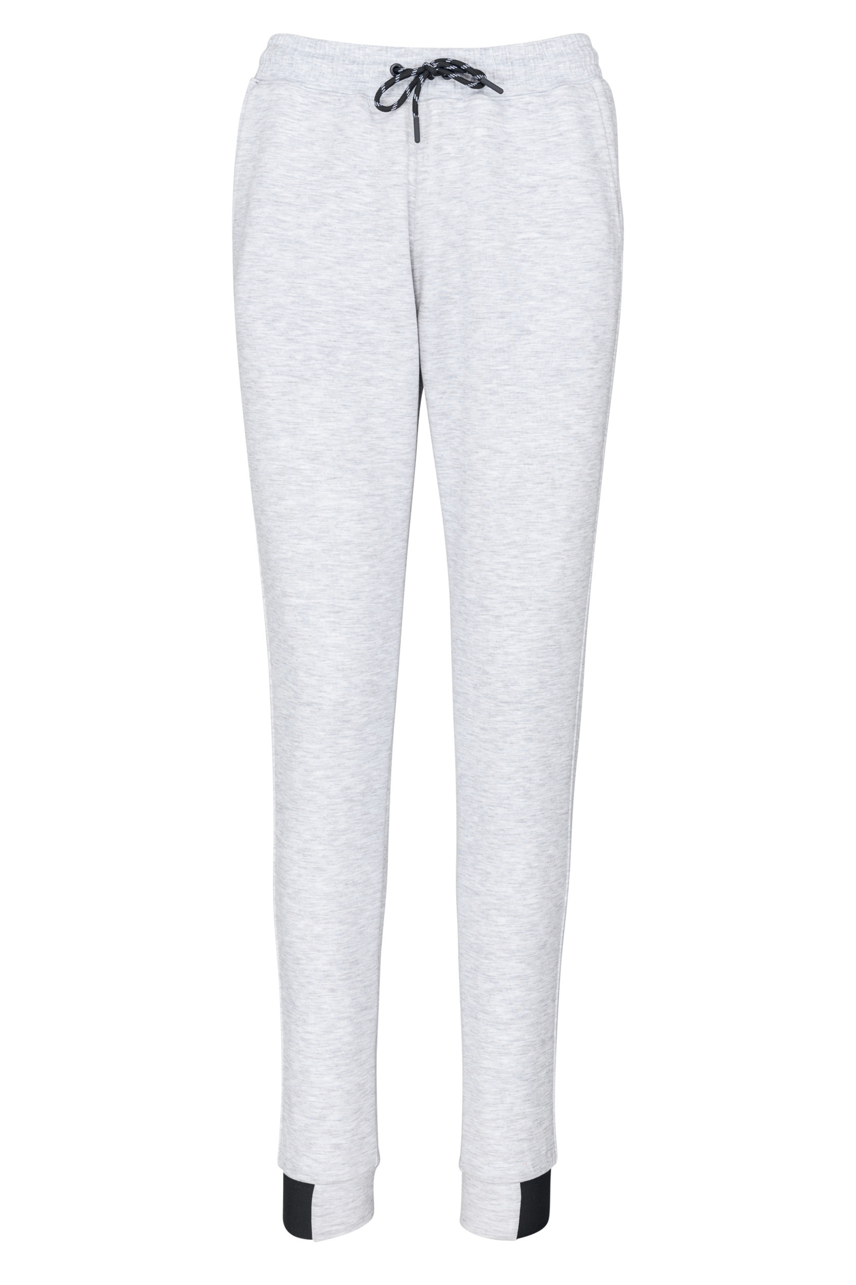 94% polyester/ 6% elasthan. (Heather: 79% polyester/15% viscose/ 6% elasthan). Heel comfortabele stof. Elastische tailleband met tweekleurige aanrijgkoordjes, afgewerkt met een plastic uiteinde. 2 zakken aan de voorkant met jerseyvoering 65% polyester/ 35% viscose en 1 ritszak op de achterkant, warmtegelaste afwerking. Moderne snit en fitted pasvorm met knie-inzetstukken. Nauwsluitend onderaan de broekspijpen met een contrasterend, elastisch stuk Black op alle kleuren en Dark Grey op de Ash Heather. Heel comfortabele stof. Fitted en modieuze pasvorm. Blijft goed zitten dankzij de elastische tailleband met aanrijgkoordjes.
