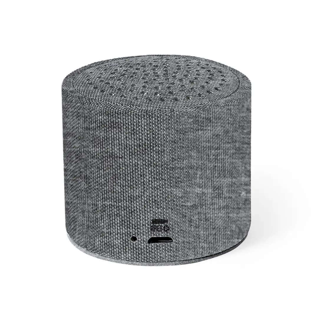 Natuurlijn, compacte luidspreker met Bluetooth® 5.0 aansluiting. Behuizing in van RPET polyester, gemaakt van gerecycled plastic, om het hergebruik van plastic afval te bevorderen en de duurzaamheid van de planeet te helpen.3W vermogen, compatibel met iOS en Android en inclusief micro USB oplaadkabel en anti-slip voet. Gepresenteerd in een aantrekkelijke eco-design doos. Met RPET embleem op het artikel.