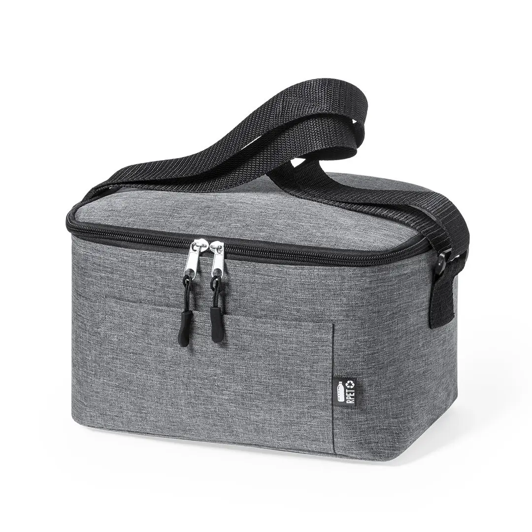 Natuurlijnkoeler van bestendig 600D RPET polyester met gemêleerd effect. Gemaakt van gerecycled plastic, om het hergebruik van plastic afval aan te moedigen en bij te dragen aan de duurzaamheid van de planeet. Zwarte kleurdetails en verstevigde bodem. Hoofdvak met ritssluiting, isothermisch met aluminium afwerking. Inclusief buitenvak en verstelbare schouderriem, met RPET embleem op buitenlabel.