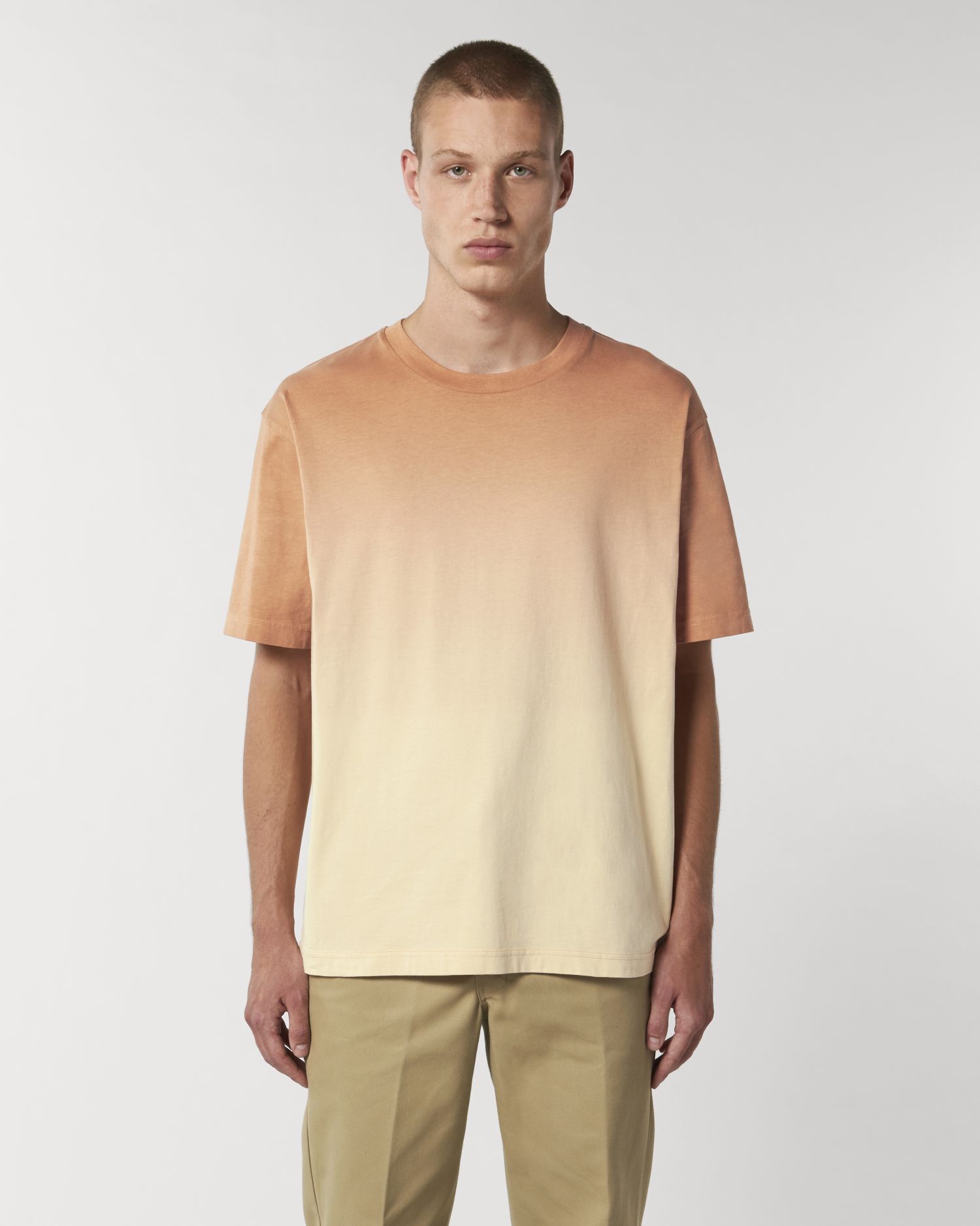 Uniseks los dip dye-T-shirt. Comfortabele pasvorm, Ronde hals, Short Sleeve, Enkelvoudige jersey. Ingezette mouwen 1x1-ribboord bij hals Verstevigingsband in de hals, gemaakt van het hoofdmateriaal Dubbel smal sierstiksel op onderkant mouw en onderkant lijfje Dip dyed product, elk kledingstuk kan verschillen qua uiterlijk, kleur kan afgeven, volg de instructies op ons onderhoudslabel Lees aandachtig de printtips