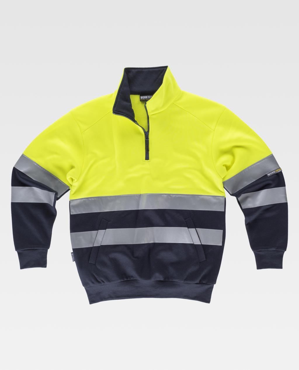 Sweatshirt gecombineerd met reflecterende banden. Hoge hals met nylon halve ritssluiting en versterkte naden. Bovenwerk met hoge zichtbaarheid. Twee zijzakken aan de binnenkant. Twee reflecterende banden op de borst, rug en mouwen. Zachte en warme afwerking van binnen. Geribbelde elastische manchetten en taille. Sweatshirt gecombineerd met reflecterende banden. Hoge hals met nylon halve ritssluiting en versterkte naden. Bovenwerk met hoge zichtbaarheid. Twee zijzakken aan de binnenkant. Twee reflecterende banden op de borst, rug en mouwen. Zachte en warme afwerking van binnen. Geribbelde manchetten en tailleband. Vertrouw op Garrampa, al 15 jaar toonaangevend op het gebied van merchandising, en verras uw klanten en medewerkers met elk relatiegeschenk uit ons brede assortiment.