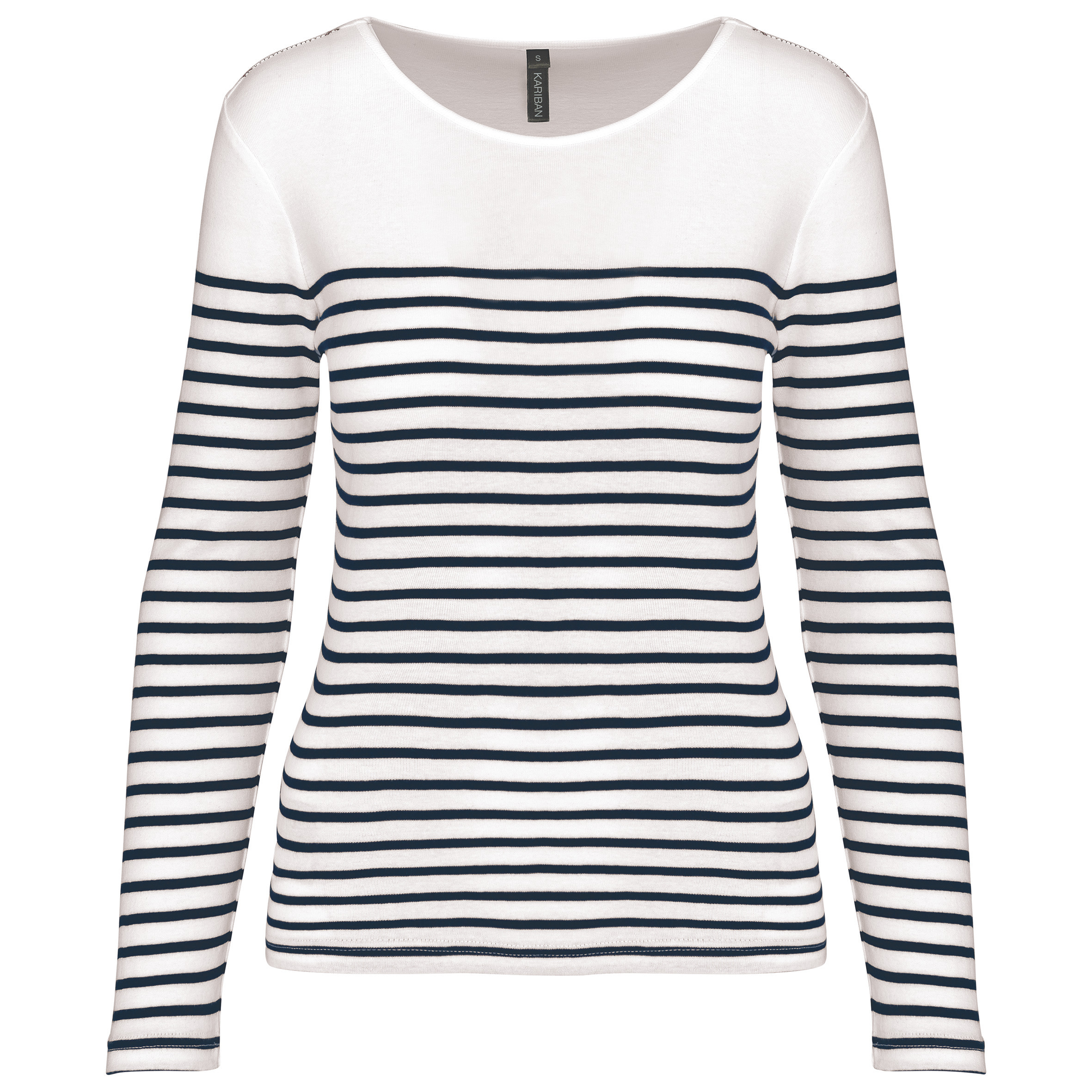 100% katoen 1x1 rib. Ronde hals Fantasie-design op de schouder. Zijsplitten. Gecertificeerd STANDARD 100 by OEKO-TEX®N° CQ1007/7, IFTH. Het klassieke en tijdloze gestreepte T-shirt. Moderne snit voor een casual-chique look. Collectie Sailing. Gemaakt uit 100% katoen.