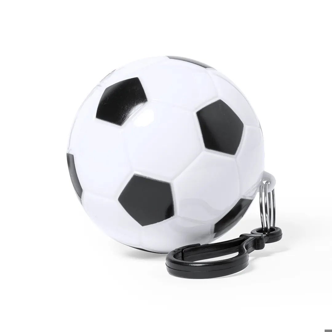 Sleutelhanger poncho met origineel voetbal design. Binnenponcho gemaakt van LDPE, one size fits all voor volwassenen (120x90cm). Inclusief karabijnhaak voor transport en met een groot merkoppervlak.