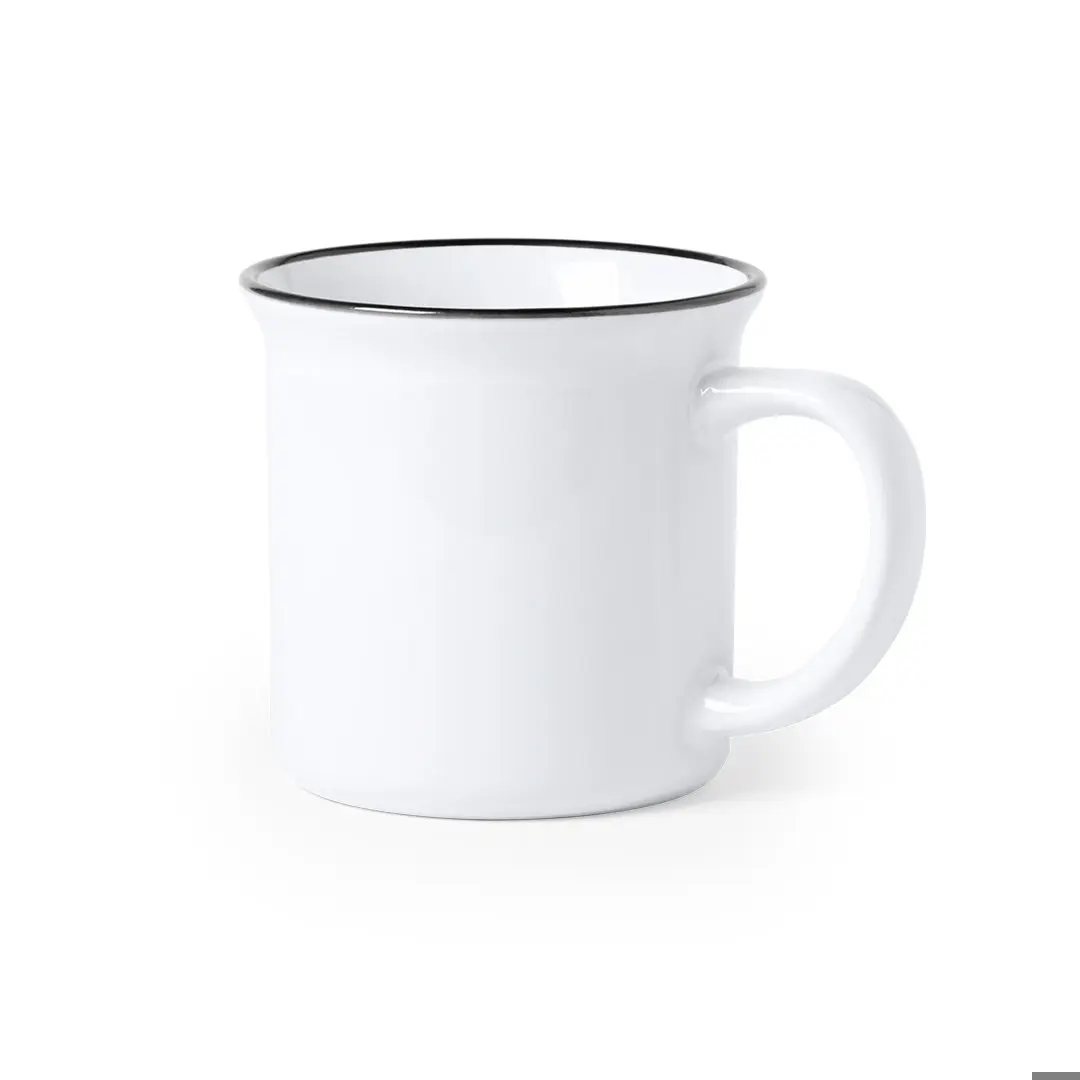Keramische mok van 300 ml met vintage design. In witte kleur met felgekleurde ring. Speciaal ontworpen voor sublimatiedruk en gepresenteerd in een individuele doos.