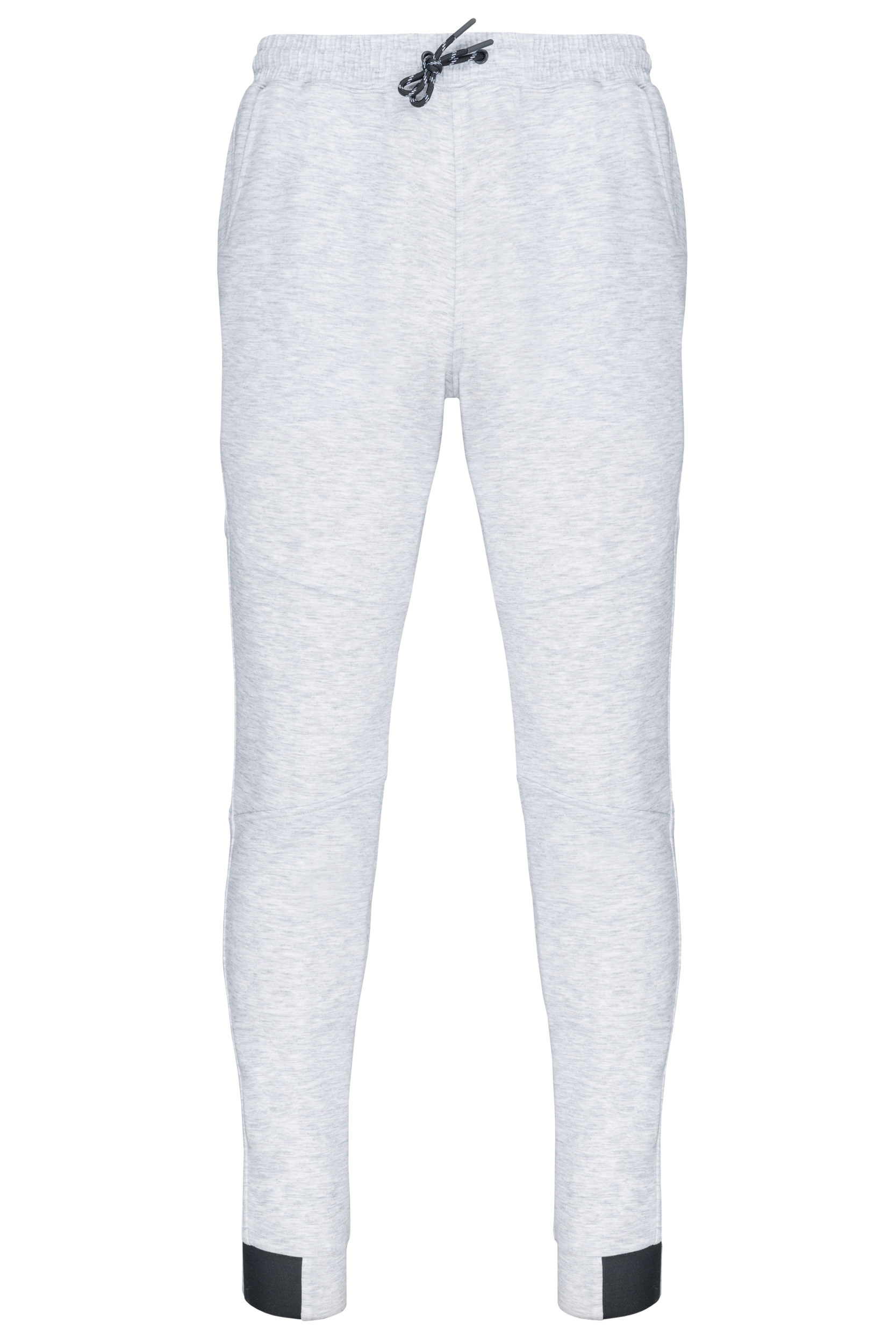 94% polyester/ 6% elasthan (Heather : 79% polyester/ 15% viscose/ 6% elasthan). Heel comfortabele stof. Elastische tailleband met tweekleurige aanrijgkoordjes, afgewerkt met een plastic uiteinde. 2 zakken aan de voorkant met jerseyvoering 65% polyester/ 35% viscose en 1 ritszak op de achterkant, warmtegelaste afwerking. Moderne snit en fitted pasvorm met knie-inzetstukken. Nauwsluitend onderaan de broekspijpen met een contrasterend, elastisch stuk Black op alle kleuren en Dark Grey op de Ash Heather. Heel comfortabele stof. Fitted en modieuze pasvorm. Blijft goed zitten dankzij de elastische tailleband met aanrijgkoordjes.