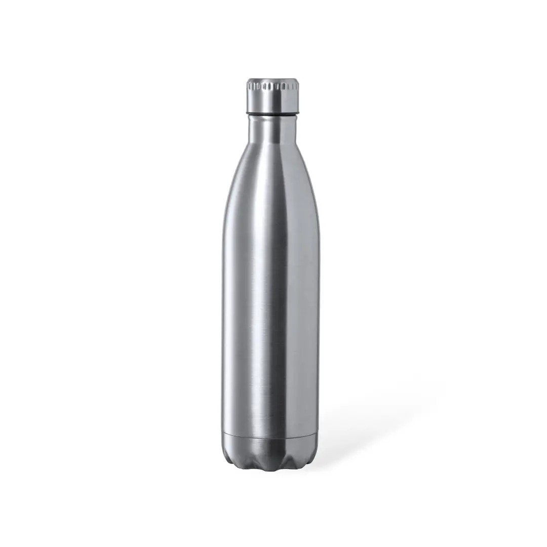 Fles met een inhoud van 1 l, van roestvrij staal met glanzende afwerking. Met bijpassende schroefdop van roestvrij staal, BPA-vrij. Gepresenteerd in een individuele doos met kraft ontwerp.