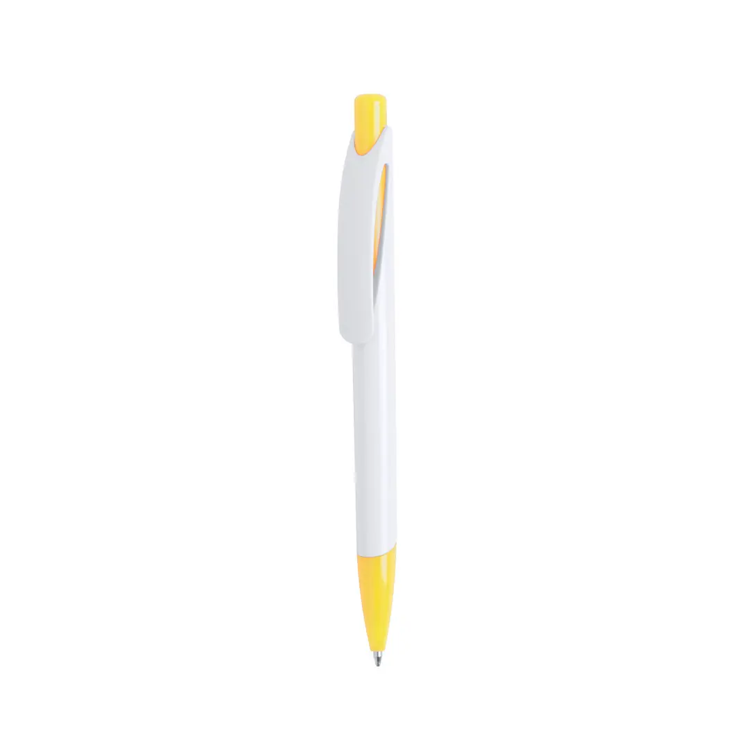 Balpen in tweekleurig ontwerp met accessoires in heldere, effen kleuren en zachte body in effen wit. Met originele, gebogen clip en punt in bijpassende kleur.