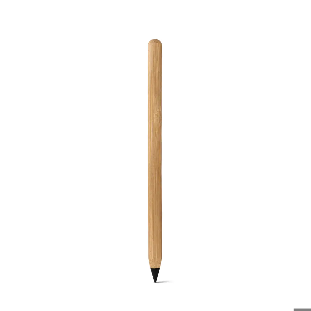 Inktloze pen van bamboe met punt van metaallegering met grafiet. Gaat lang mee, is uitwisbaar en hoeft niet geslepen te worden. Ø8 x 138 mm