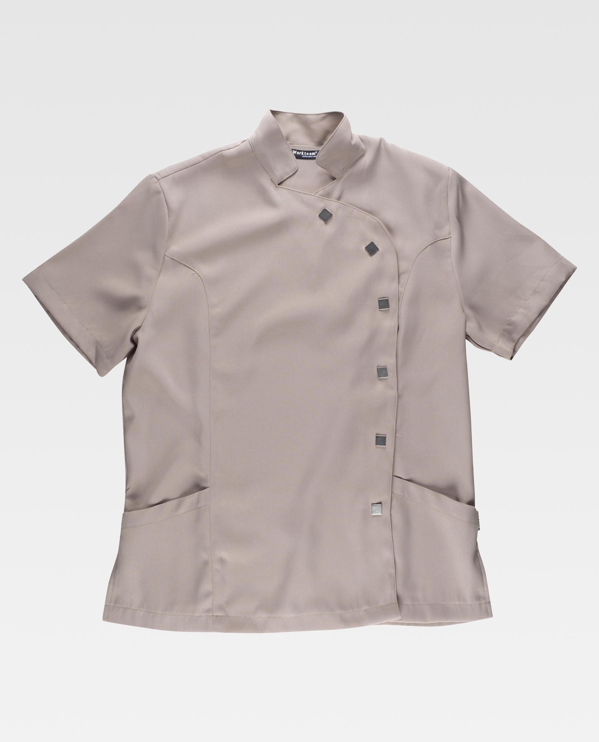 Getailleerd damesjack met korte mouwen en maokraag. Afgeronde zijsluiting met vierkante metalen beugels. Zijribben met schuin opgezette zijzak. Openingen aan de zijkanten. De samenstelling van 100% polyester zorgt voor de maatvastheid van het kledingstuk. Jas B9500. Geen verzendkosten. Hoeveelheidskortingen tot 60%. Bereken uw prijs online.