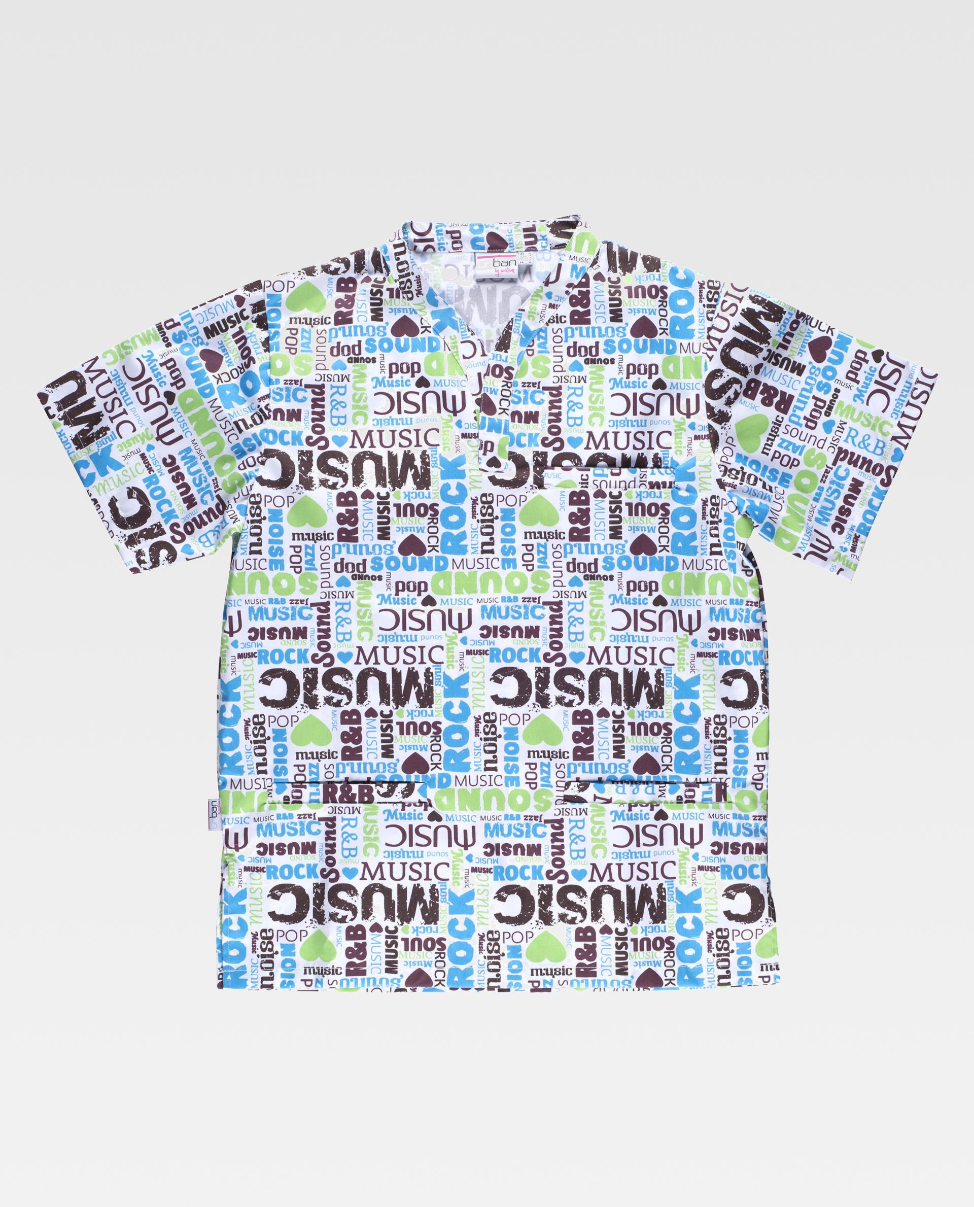 Unisex jack met korte mouwen, muziekprint en vlekbestendige afwerking. Gekruiste gestreepte hals, een borstzak en twee knoopsgaten aan de zijkanten. Openingen aan de zijkanten. Unisex jack met korte mouwen met een 'music' print en een vlekbestendige afwerking. Gekruiste gestreepte hals, een borstzak en twee knoopsgaten aan de zijkanten. Openingen aan de zijkanten. Vertrouw op Garrampa, al 15 jaar toonaangevend op het gebied van merchandising, en verras uw klanten en medewerkers met elk relatiegeschenk uit ons brede assortiment.