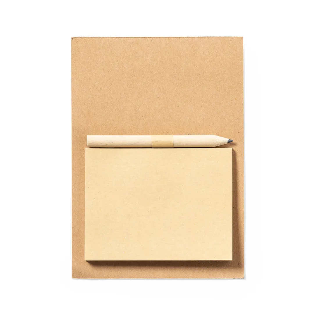 Magneet voor notities in natuurlijn. Gemaakt van stevig gerecycled papier, inclusief mini houten potlood en notitieblok met 40 crèmekleurige effen vellen.