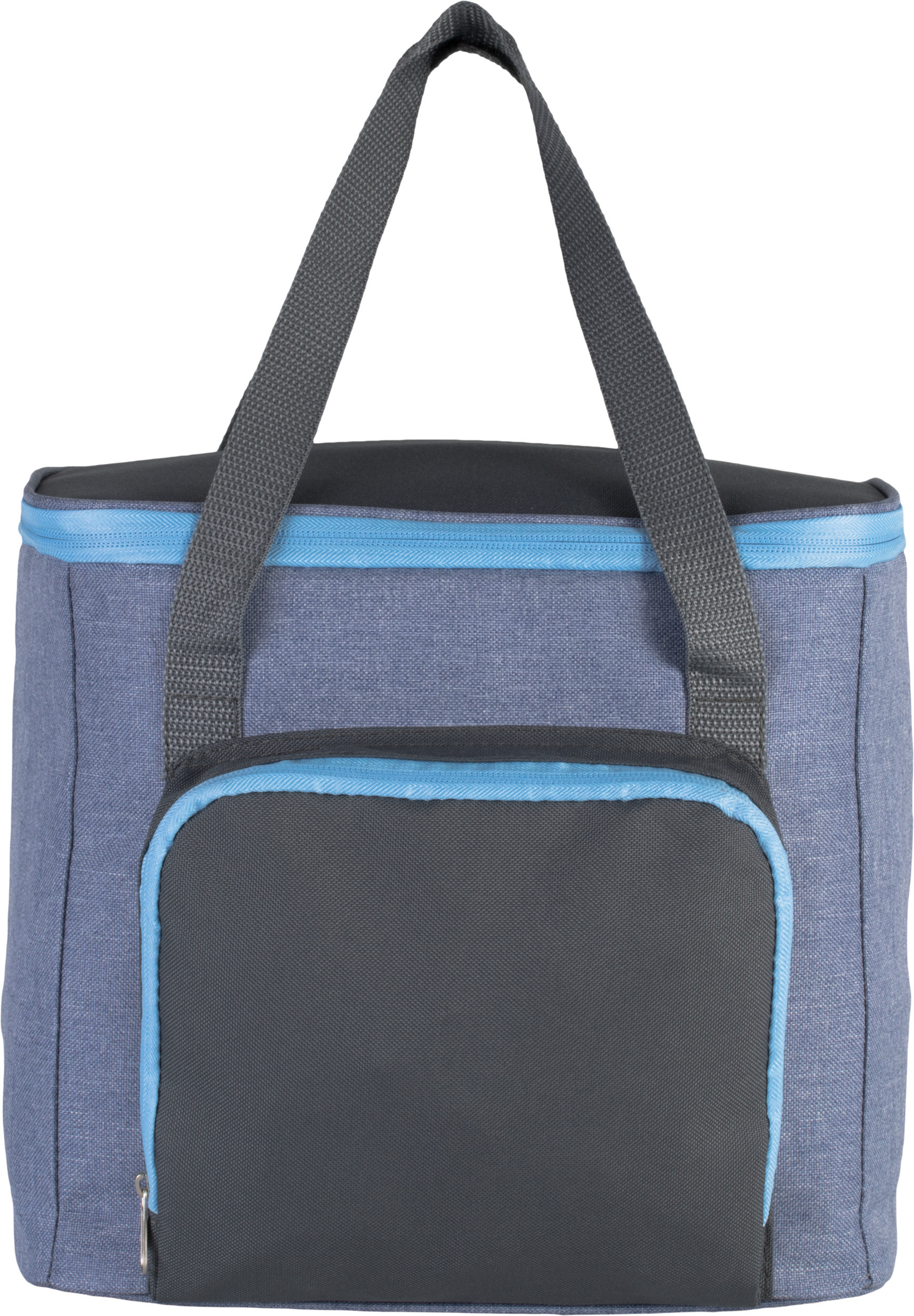 Koeltas van 600D polyester.1 ritszak aan de voorkant voor eenvoudige personalisatie. Hengsels en zak in een contrasterende kleur. Er kunnen flessen van 500 ml en blikjes in. Sterk, soepel en mooi design dankzij de draagriemen en zak in contrasterende kleuren. Gemakkelijk te personaliseren dankzij 1 ritszak aan de voorkant. Ruim.