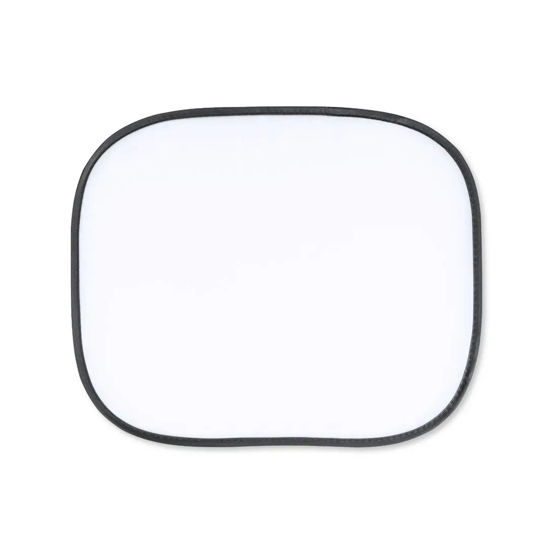 Originele set de 2 parasoles plegables para ventanilla, fabricados en resistente poliéster. Ligeros y en medidas 44 x 36 cm cada uno, con ribetes reforzados y fijación por ventosas (4 unidades incluidas). Con sencillo sistema de plegado y funda individual a juego. Color blanco especial para sublimación.