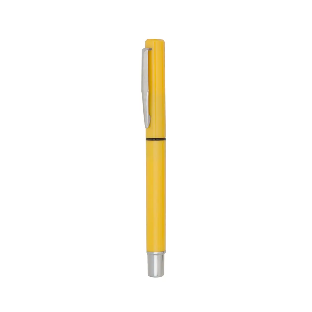 Balpen met zachte, solide afwerking in warme kleuren. Met zilverkleurige accessoires en punt in transparante afwerking, metalen clip en blauwe inkt.