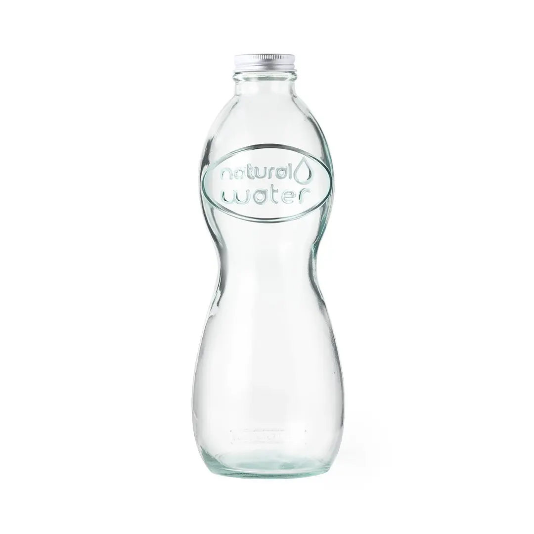 Natuurlijn fles met een inhoud van 1l en een metalen schroefdeksel. Gemaakt in Europa van gerecycled glas met GRS-certificering (Global Recycled Standard) ter bevestiging van de gerecyclede herkomst van het materiaal dat is gebruikt bij de vervaardiging van het product. Gepresenteerd in een doos van gerecycled karton met venster.