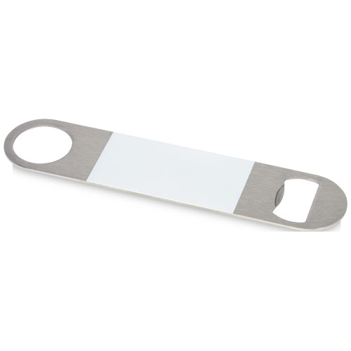 Flesopener van roestvrij staal met een groot gekleurd vlak in het midden.