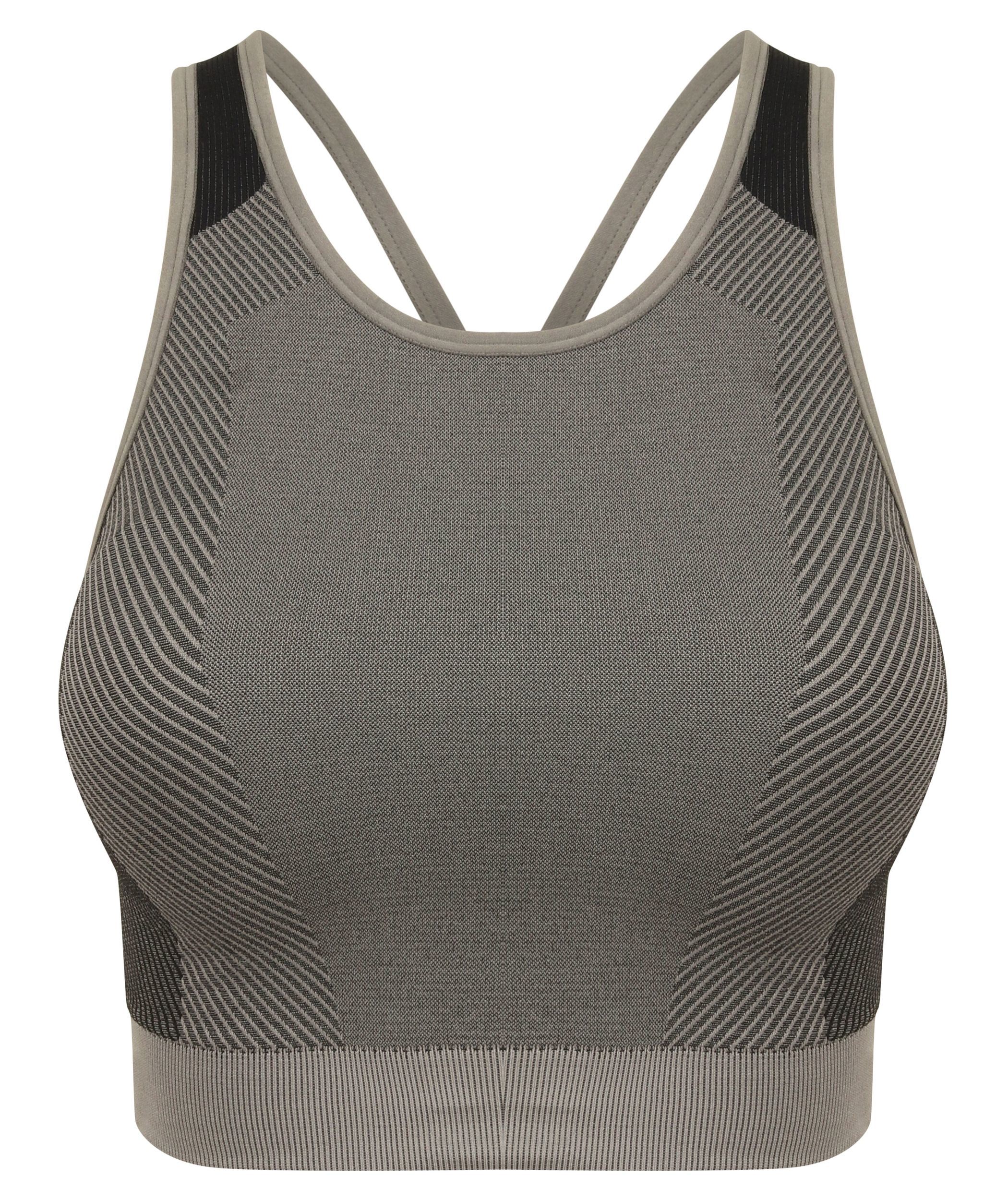 61% nylon / 32% polyester / 7% elasthan. Beha met inzetsel zonder naden. Racerback en gekruiste schouderbandjes. Past bij legging TL350. Stretchstof voor een goede pasvorm. Comfortabel voor een goede beweeglijkheid.