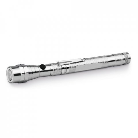 Uitschuifbare en flexibele metalen LED-zaklamp met 3 LED's, magneet op de punt en een clip. Inclusief 4 LR44 lithiumbatterijen.ø22 x 175 mm