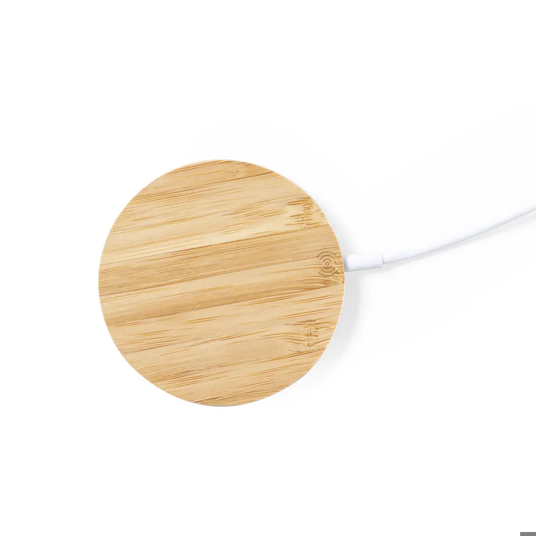 Natuur lijn, draadloze magnetische oplader met mobiele telefoon houder functie. Draadloze oplader gemaakt van bamboe, en behuizing in PLA -Poly Lactic Acid-, dat wordt verkregen uit 100% natuurlijke grondstoffen zoals maïszetmeel, yucca of suikerriet, in staat om 100% composteerbaar te worden aan het einde van zijn levensduur. Met 10W snellaadfunctie en compatibel met apparaten die zijn uitgerust met draadloze oplaadtechnologie. Inclusief zelfklevende metalen ring en 100 cm USB-aansluitkabel. Groot merkoppervlak en gepresenteerd in een aantrekkelijke eco-design doos. PLA-embleem op het artikel.