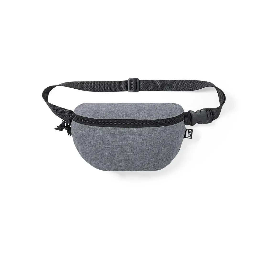 Natuurlijn heuptasje gemaakt van resistent 600D RPET, gemêleerd effect. Gemaakt van gerecycled plastic om het hergebruik van plastic afval te stimuleren en bij te dragen aan de duurzaamheid van de planeet. Hoofdvak met ritssluiting en verstelbare riem met gespsluiting. Ontworpen voor sport- en vrijetijdsactiviteiten, met RPET-kenmerk op het etiket aan de buitenkant.