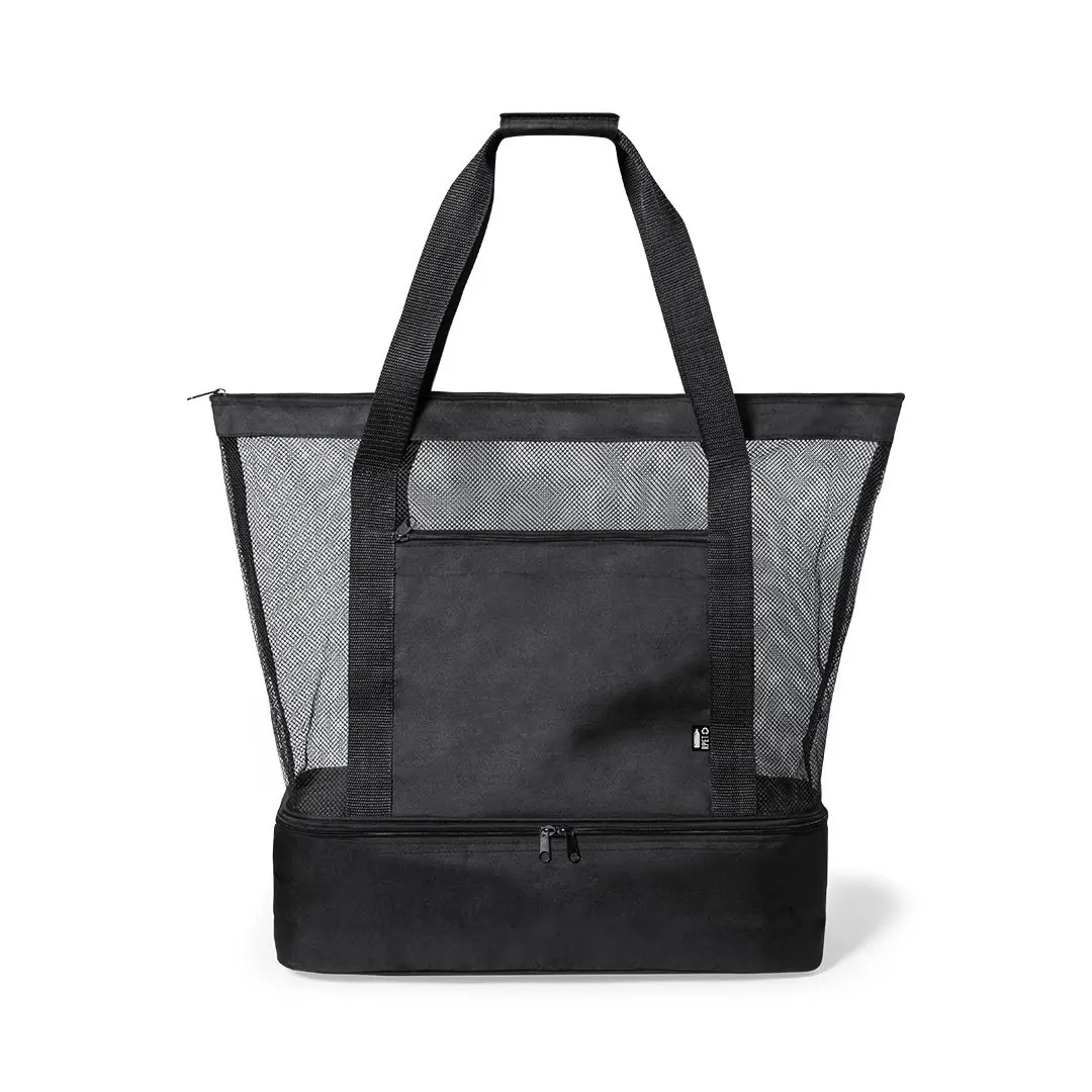 Koeltas van duurzaam 600D RPET polyester, gemaakt van gerecycled plastic, om het hergebruik van plastic afval aan te moedigen en bij te dragen aan de duurzaamheid van de planeet. Hoofdcompartiment in mesh, met ritssluiting. Bodem met geïntegreerde koelbox, vervaardigd uit duurzaam 600D RPET polyester, met PEVA isotherm binnenin. Versterkte handgrepen en groot voorvak, met RPET embleem op buitenlabel.