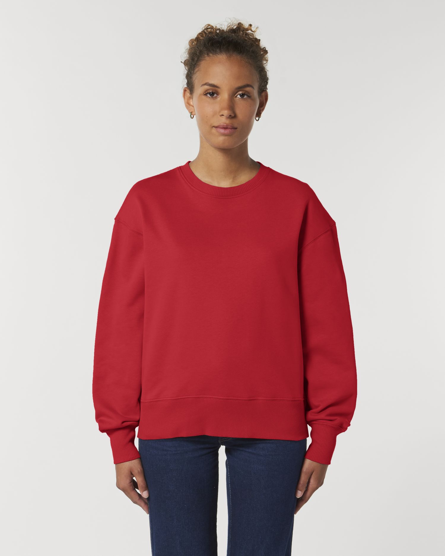 Losse uniseks sweater met ronde hals. Comfortabele pasvorm, Ronde hals, Long Sleeve, Geborstelde molton. Ingezette mouwen 2x2-ribboord bij hals, onderaan de mouwen en onderaan het lijfje Verstevigingsband met visgraatpatroon in de hals Halvemaantje in de hals, gemaakt van het hoofdmateriaal Enkelvoudig sierstiksel bij de halsuitsnijding Dubbel sierstiksel bij de mouwinzetten, onderaan de mouwen en onderaan het lijfje