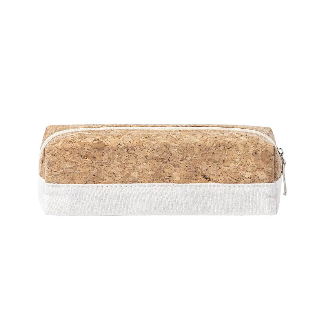 Natuurlijn etui in combinatie van natuurkurk en ruwe katoen. Met ritssluiting en bijpassend katoenen handvat. Individueel verpakt in een zakje van gerecycled materiaal.
