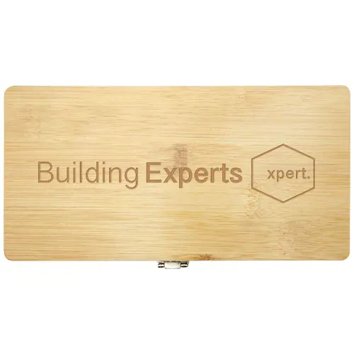 Ervaar de perfecte mix van duurzaamheid en functionaliteit met de Rivet-gereedschapsset. Deze zorgvuldig ontworpen gereedschapskoffer is niet alleen visueel aantrekkelijk, maar ook milieuvriendelijk zonder afbreuk te doen aan kwaliteit of prestaties. De natuurlijke sterkte en duurzaamheid van bamboe zorgen ervoor dat je gereedschap jarenlang beschermd blijft. In de koffer vind je een set van 19 essentiële gereedschappen gemaakt van koolstofstaal en gerecycled plastic: 1 lange scharnierhandgreep, 4 hoogwaardige doppen voor diverse toepassingen, 1 verlengstuk voor moeilijk bereikbare plaatsen, 10 nauwkeurig vervaardigde schroevendraaierbits voor elke klus en 3 inbussleutels voor meubelmontage. Of je nu een doe-het-zelver of een professionele vakman bent, deze gereedschappen zijn ontworpen om betrouwbaar te presteren en bestand te zijn tegen intensief gebruik. Omdat bamboe een natuurproduct is, kunnen er kleine variaties in kleur en grootte per artikel zijn, wat het uiteindelijke drukresultaat kan beïnvloeden. Verpakt in een STAC-geschenkverpakking van duurzame bronnen.