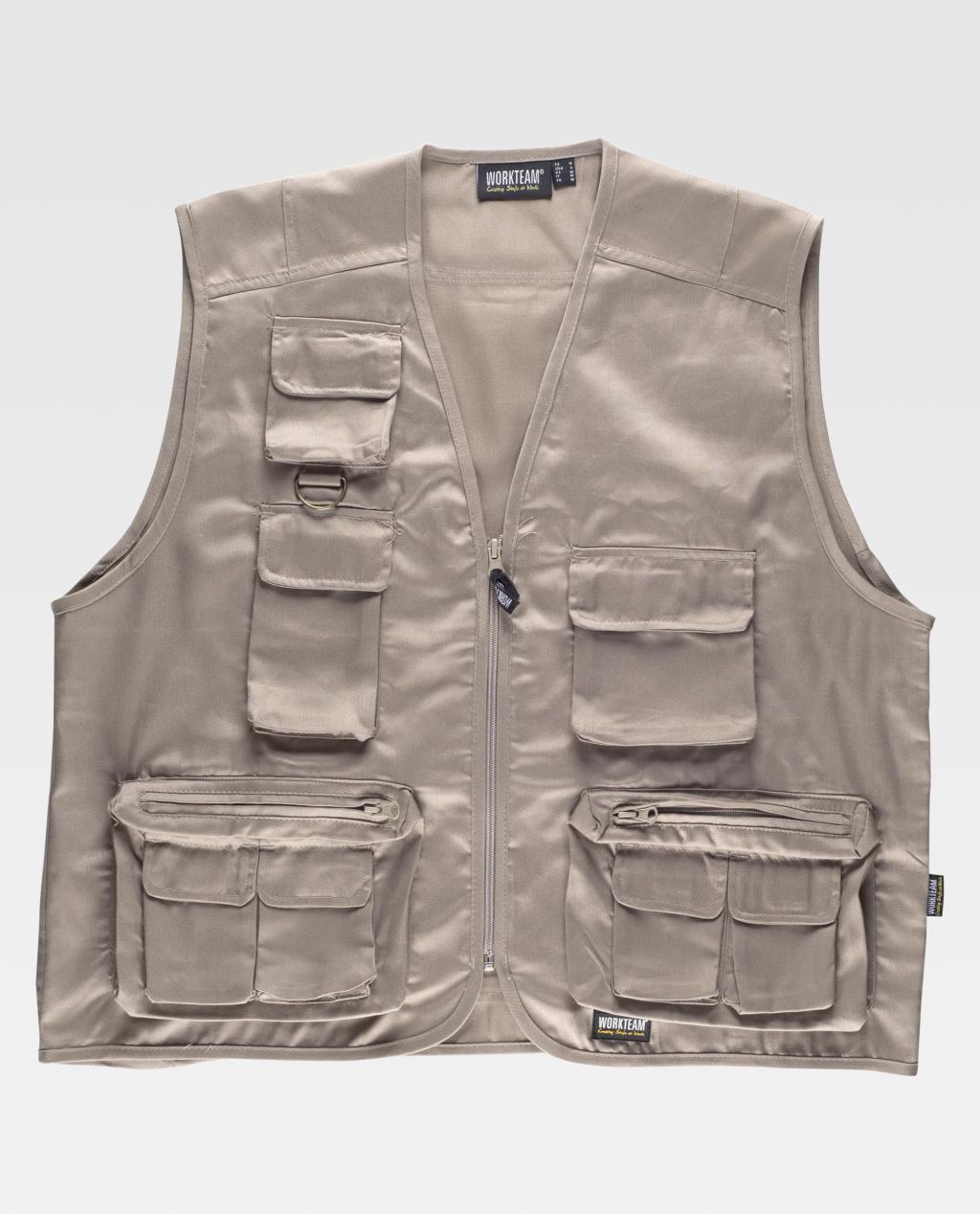 Safari type vest met nylon ritssluiting. V-halslijn. Drie borsttassen in verschillende maten met balg en klittenbandflap. Metalen ring op de bovenste zak. Twee zijzakken met plooi en ritssluiting aan de zijkanten. Overlappende extra zakken met velcro flap. Achtertas met balg en ritssluiting. Afgezet met vooringenomenheid. Safari type vest met nylon ritssluiting. V-halslijn. Drie borsttassen in verschillende maten met balg en klittenbandflap. Metalen ring op de bovenste zak. Twee zijzakken met plooi en ritssluiting aan de zijkanten. Overlappende extra zakken met velcro flap. Achtertas met balg en ritssluiting. Bias trim. Vertrouw op Garrampa, al 15 jaar toonaangevend op het gebied van merchandising, en verras uw klanten en medewerkers met elk relatiegeschenk uit ons brede assortiment.