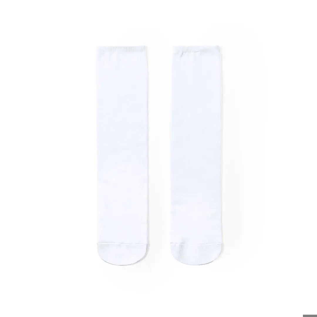 Paar sokken gemaakt van wit polyester en speciaal ontworpen voor sublimatie printen. In maat S-M.