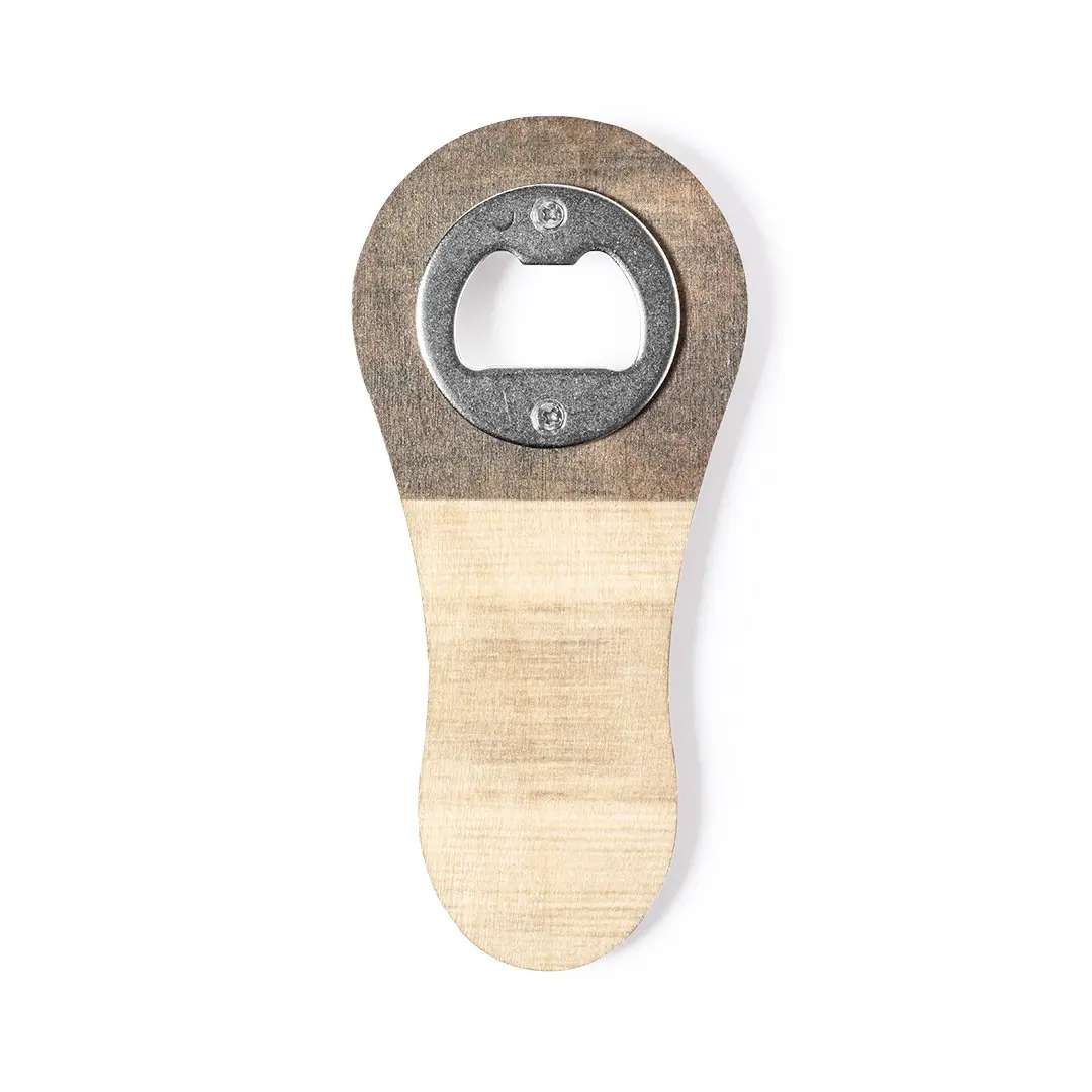 Magneetopener van natuurlijk hout met een originele tweekleurige afwerking. Met metalen openingsmechanisme, groot merkoppervlak en Made In Europe-logo.