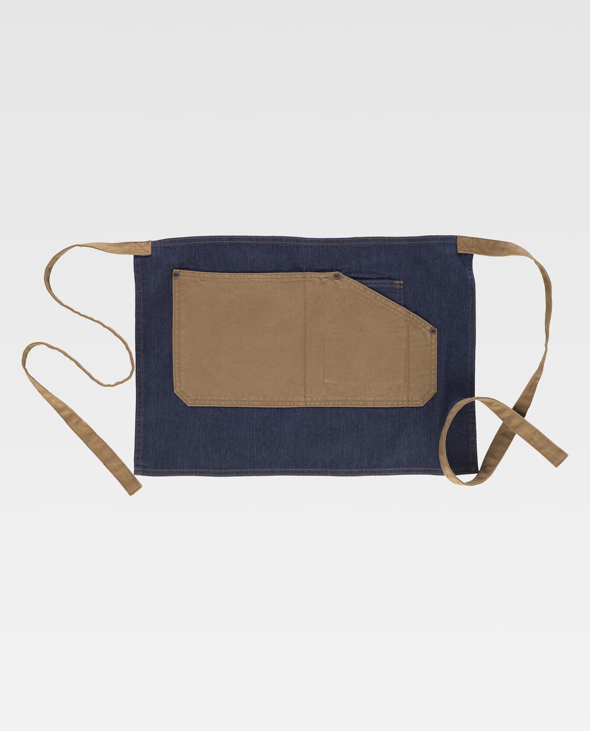 Kort Frans schort in denim stof gecombineerd met canvas. Een asymmetrische tas met centrale compartimenten en een horlogevak aan de binnenkant. Canvas stoffen linten om in de taille te verstellen. Eigentijds design met koperen klinknagels. Kort Frans schort in denim stof gecombineerd met canvas. Een asymmetrische tas met centrale compartimenten en een horlogevak aan de binnenkant. Canvas stoffen linten om in de taille te verstellen. Eigentijds design met koperen klinknagels. Vertrouw op Garrampa, al 15 jaar toonaangevend op het gebied van merchandising, en verras uw klanten en medewerkers met elk relatiegeschenk uit ons brede assortiment.
