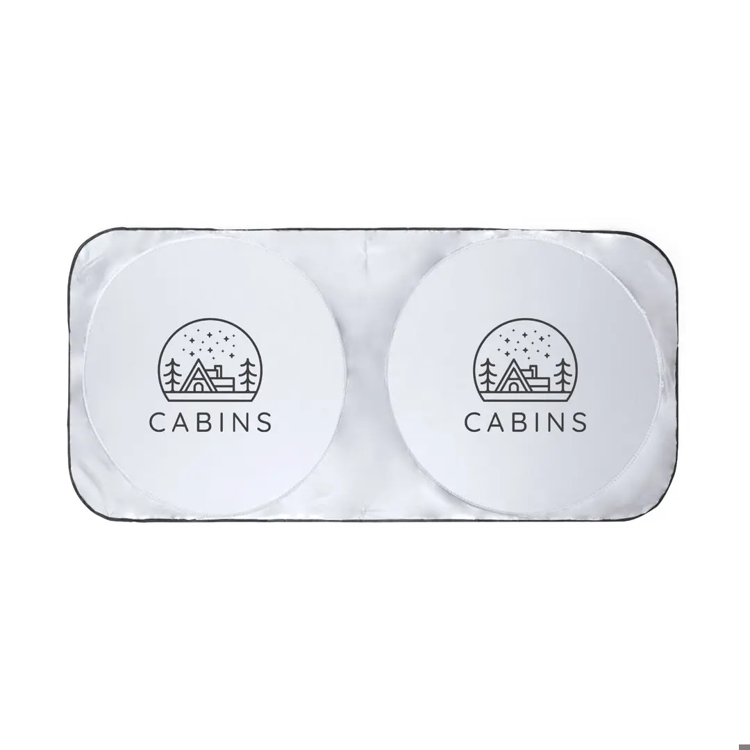 Echt opvouwbaar zonnescherm in duurzaam zilver polyester. Lichtgewicht, 150 x 70 cm groot, geschikt voor autos en bestelwagens. Versterkte biezen, met eenvoudig vouwsysteem en bijpassende individuele huls. Geleverd uitgevouwen voor eenvoudig printen, met losse hoesjes.