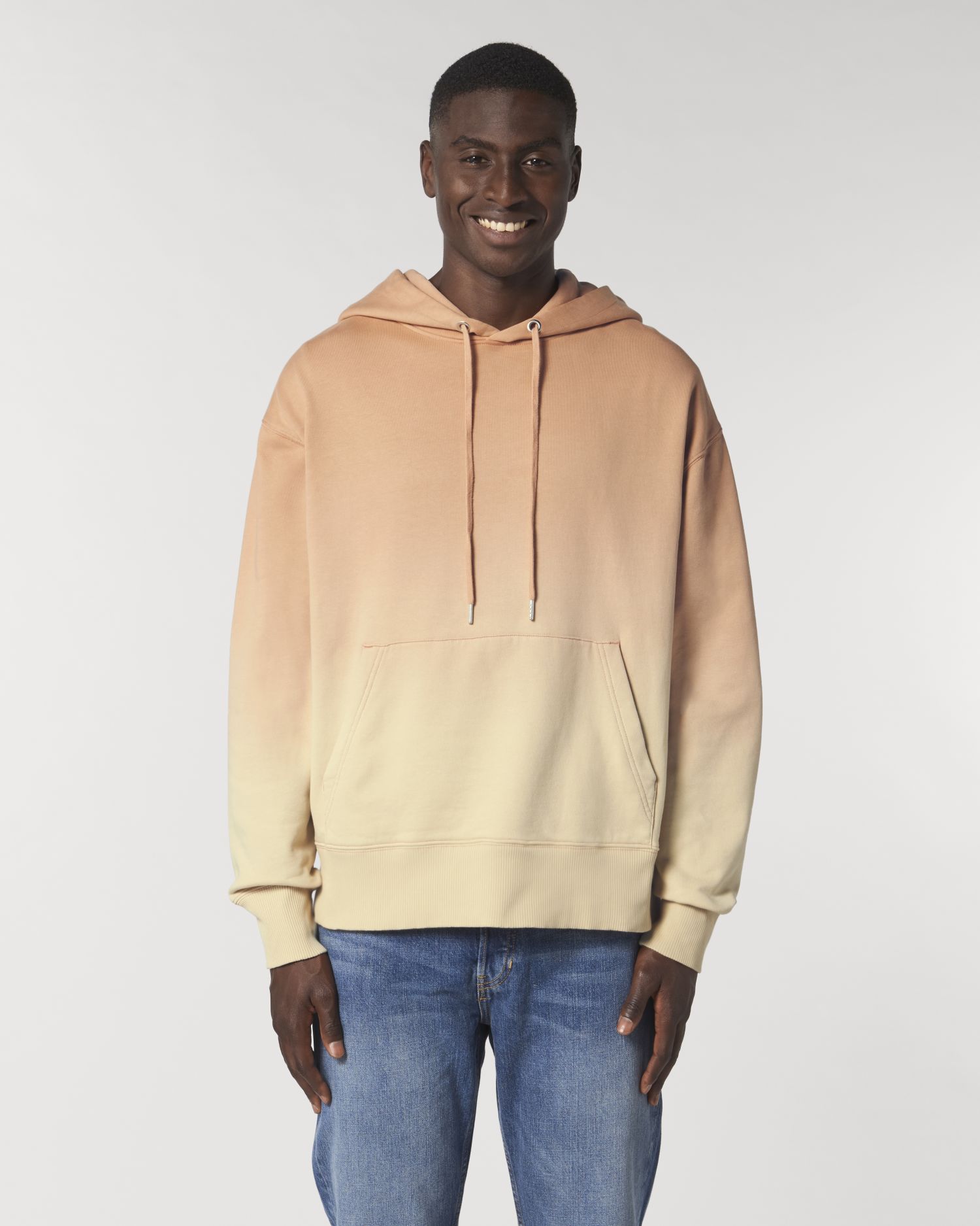 Losse uniseks dip dye-sweater met capuchon. Comfortabele pasvorm, Ronde hals met kap, Long Sleeve, Geborstelde molton. Ingezette mouwen