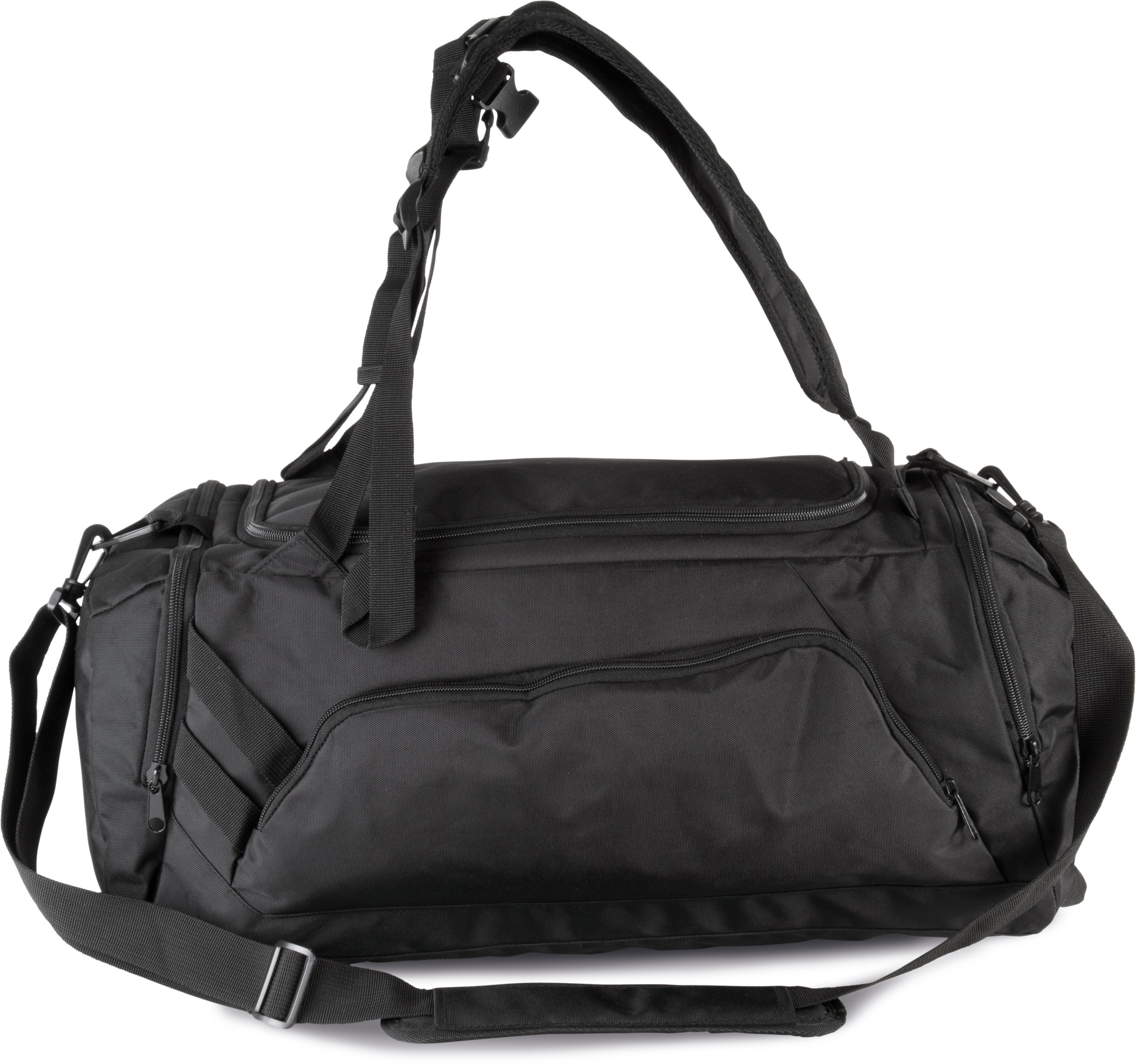 Sporttas die kan worden omgevormd tot rugzak van 900D polyester, met regelbare schouderbanden. Brede opening bovenaan. Opzij en vooraan en 2 ritszakken. Hengsel. 2 in 1, veelzijdig en te gebruiken in verschillende situaties. Sterk en duurzaam. Verstelbare schouderbanden voor meer ergonomie.