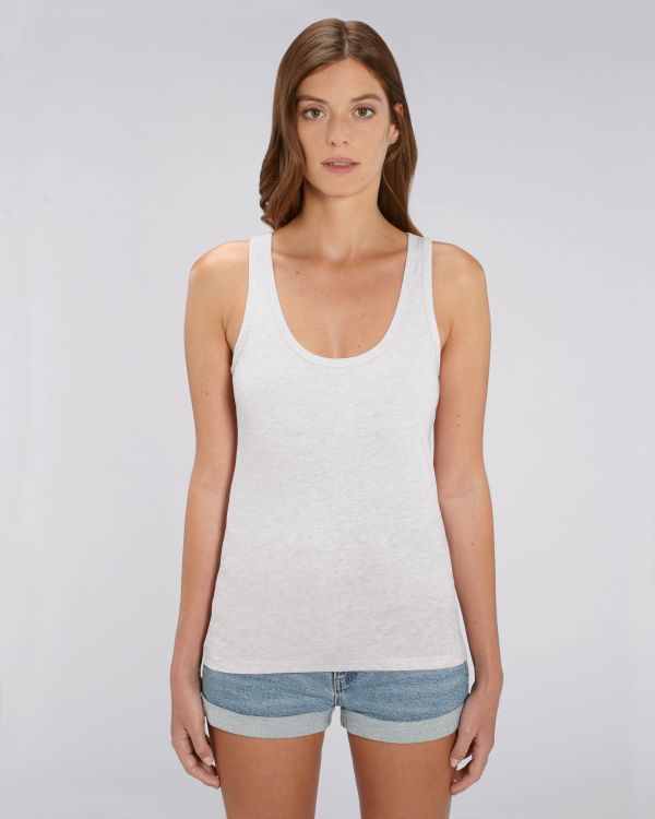 Vrouwen-tanktop. Aansluitende pasvorm, Scoop Neck, Sleeveless, Enkelvoudige jersey. Mouwloos