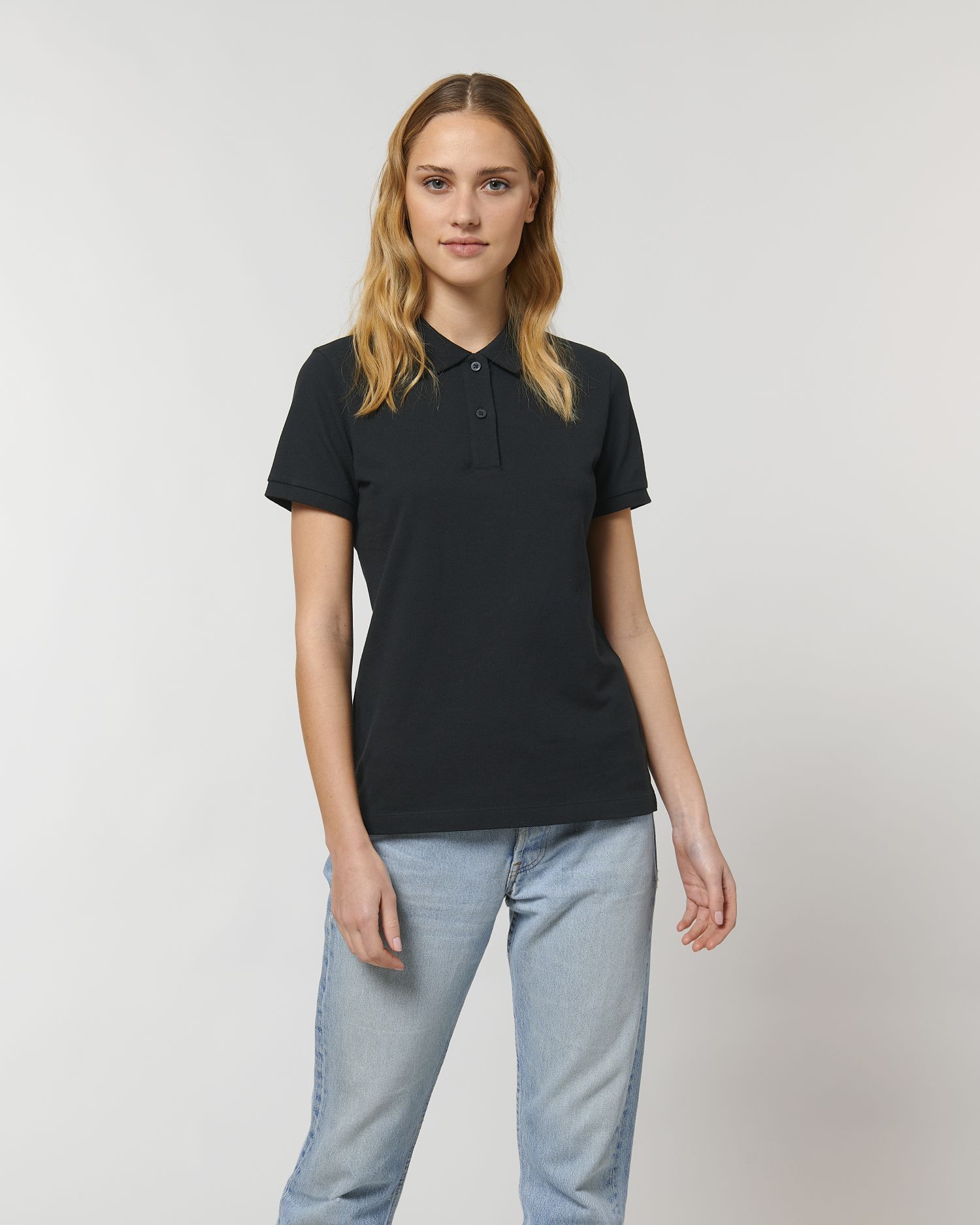 Polo voor dames. Aansluitende pasvorm, Round Neck with Collar, Short Sleeve, Piqué. Ingezette mouw Flatknit ribboord op kraag en mouwzoom Verstevigingsband uit heavy single jersey in de hals Knoopsluiting vooraan met 2 knopen in ton sur ton Zijsplitten met bekleding van heavy single jersey Enkelvoudig sierstiksel bij de schoudernaden Zoom onderaan met smal dubbel sierstiksel