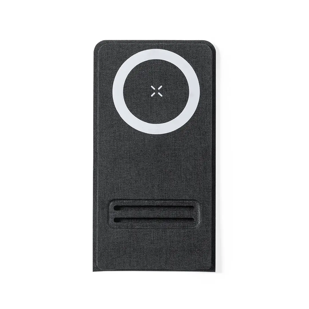 Draadloze oplader 15W. Gemaakt van bestendig polyester 300D en met magnetische bevestiging voor het gebruik van het apparaat tijdens het opladen, zelfklevende ring inbegrepen. Compatibel met alle apparaten met Magsafe- en Qi-technologie. Klein opgevouwen formaat voor draagbaarheid en gepresenteerd in een individuele, aantrekkelijke designdoos.
