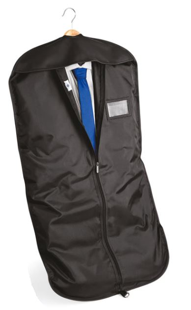 210D polyester. Hangende lus voor het opvouwen. Identificatievenster. Ritssluiting over de volledige lengte. In licht en sterk doek. Geschikt voor het vervoer van een kostuum of drie overhemden.
