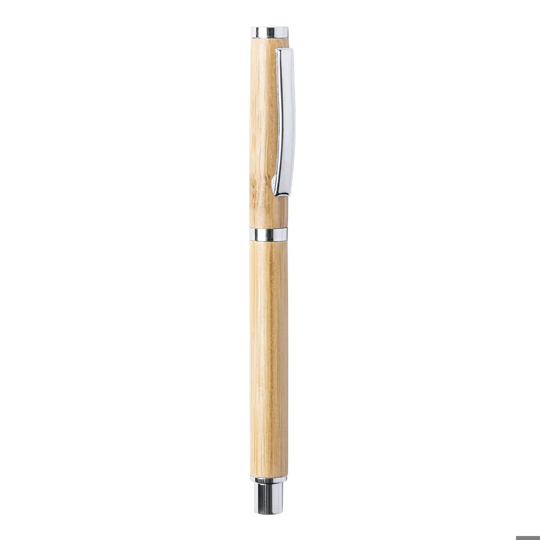 Natuurlijnroller met kap. Gemaakt van bamboe, met zacht afgewerkte loop en verchroomde accessoires. Jumbo cartridge, met blauwe inkt navulling.