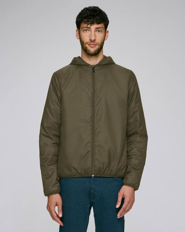 Gewatteerde uniseks jas met capuchon. Normale pasvorm, Ronde hals met kap, Long Sleeve, Ripstop, Taffeta voering. Ingezette mouwen