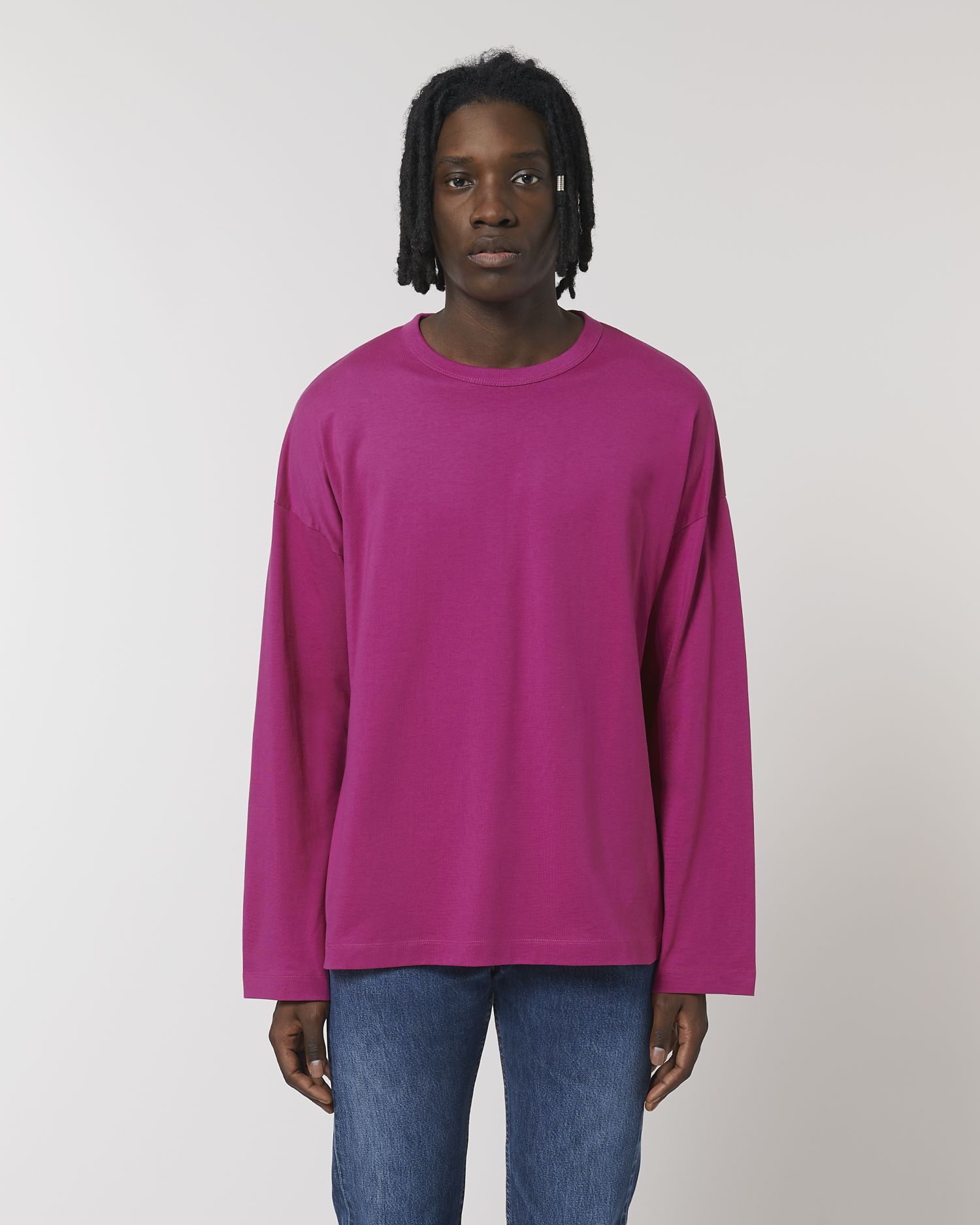 Unisex oversized T-shirt met lange mouwen. Oversized, Ronde hals, Long Sleeve, Enkelvoudige jersey. Ingezette mouw 1x1-ribboord op de kraag met smal dubbel stiksel Mouwzoom en zoom onderaan met smal stiksel