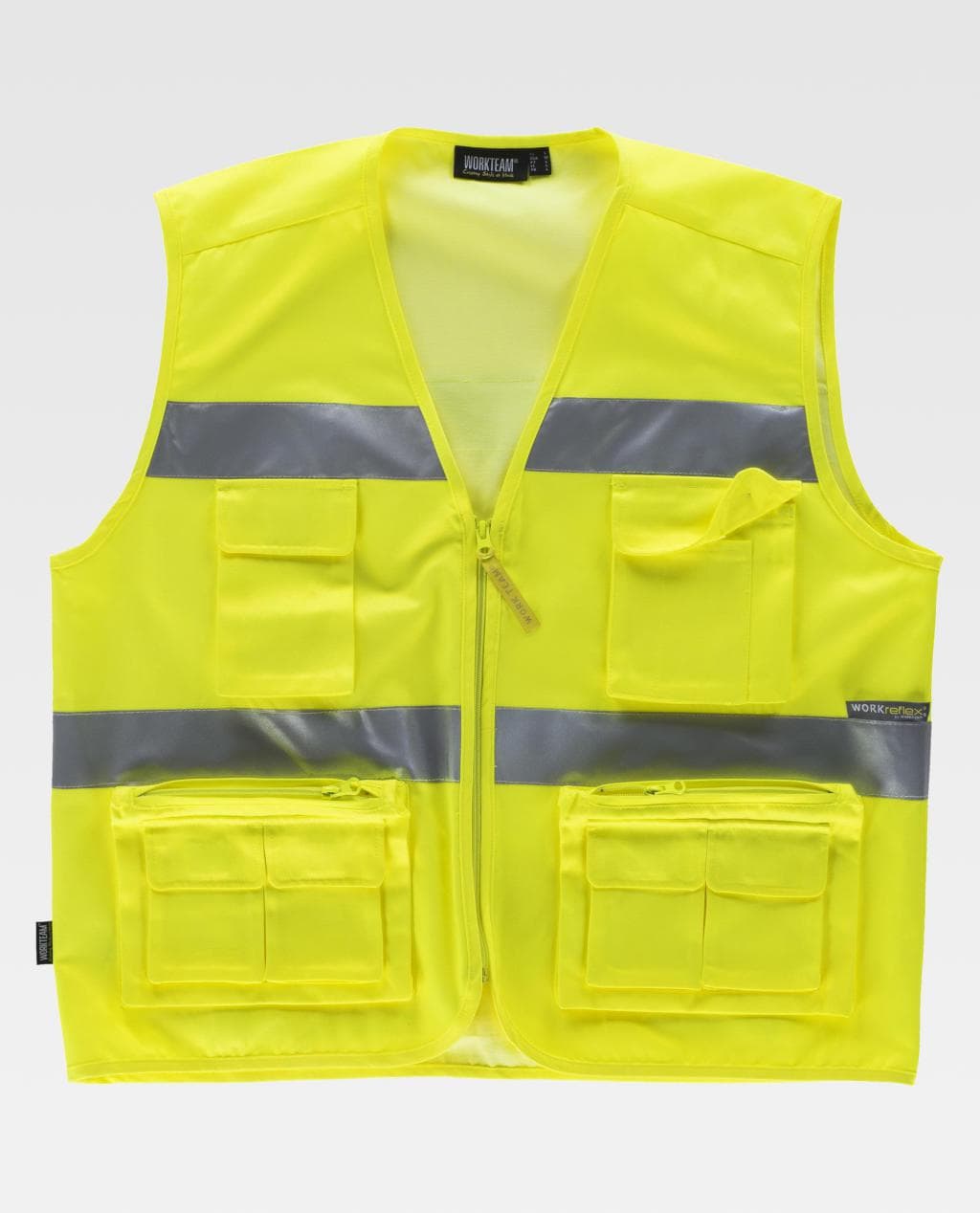 Hoge zichtbaarheidsvest met reflecterende strepen. V-hals en nylon ritssluiting. Twee borsttassen in verschillende maten met balg en klittenbandflap. Twee zijzakken met plooi en ritssluiting. Overlappende extra zakken met velcro flap. Een achtertas met balg en ritssluiting. Twee reflecterende strepen op de borst en rug. Bias bijgesneden Hoge zichtbaarheidsvest met reflecterende strepen. V-hals en nylon ritssluiting. Twee borsttassen in verschillende maten met balg en klittenbandflap. Twee zijzakken met plooi en ritssluiting. Overlappende extra zakken met velcro flap. Een achtertas met balg en ritssluiting. Twee reflecterende strepen op de borst en rug. Bias trim. Vertrouw op Garrampa, al 15 jaar toonaangevend op het gebied van merchandising, en verras uw klanten en medewerkers met elk relatiegeschenk uit ons brede assortiment.