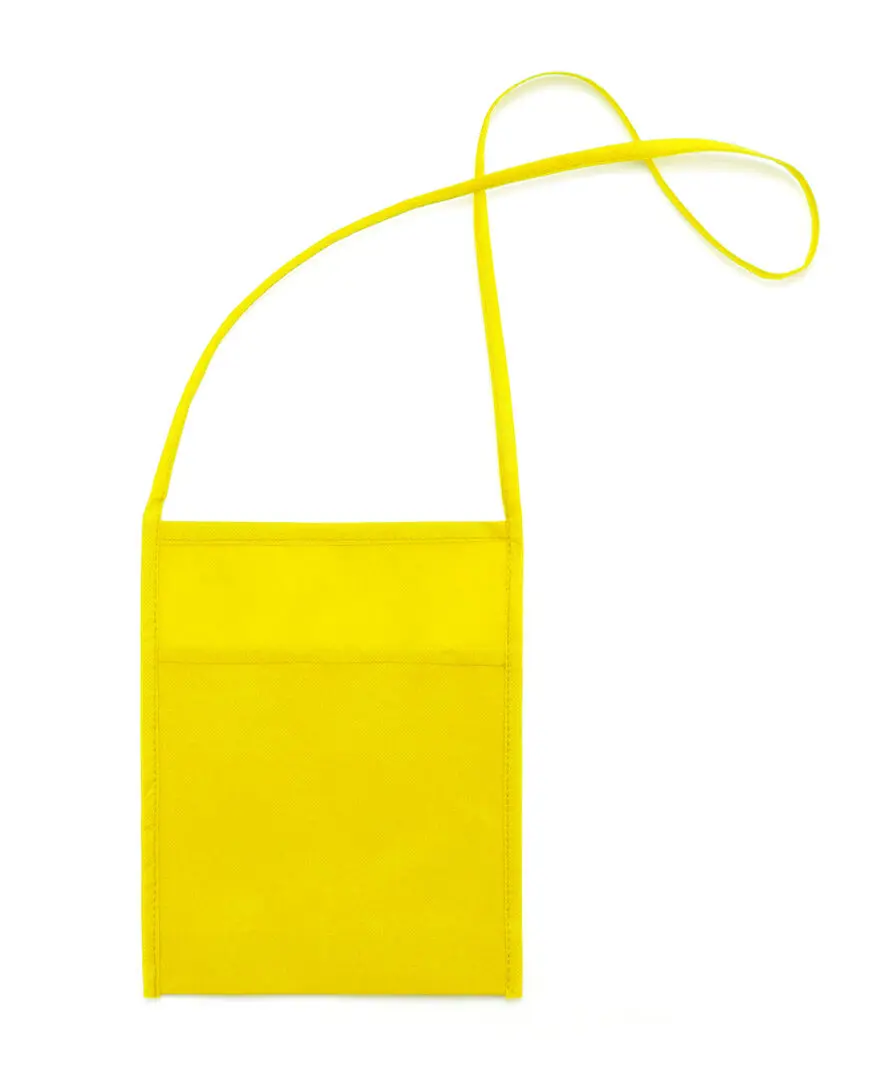 Multifunctionele tas van non-woven in vrolijke kleuren, met XL-zakformaat. Biezen en schouderriem in bijpassende kleur.